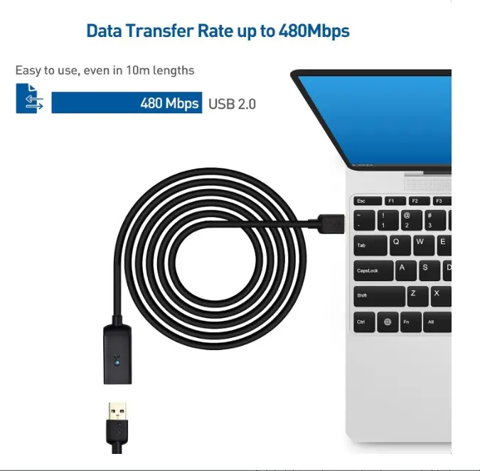 Aumento de señal fiable con chipset integrado: el cable repetidor USB cuenta con un chipset activo integrado que aumenta con precisión las señales USB 2.0 para una transmisión de datos estable y sin errores a distancias extendidas.
