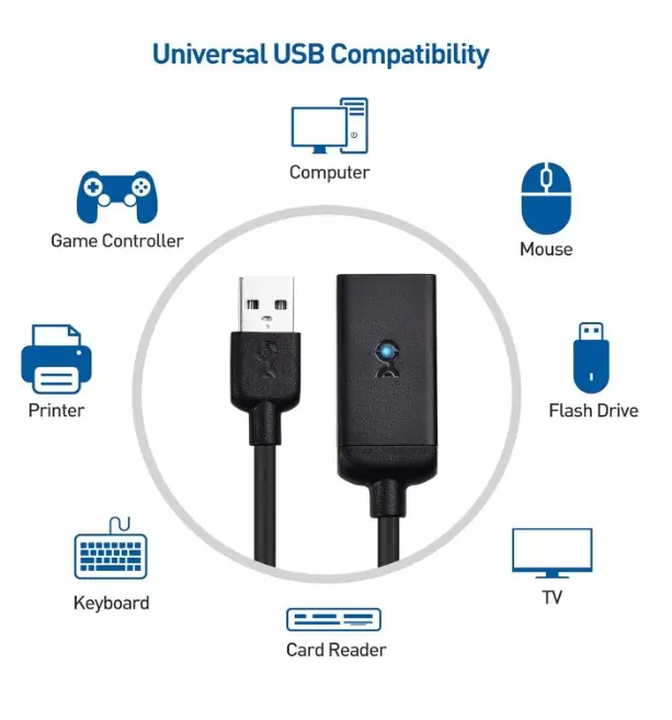 Conectividad USB de larga distancia: este cable de extensión USB activo (cable extensor USB activo) extiende el alcance de un dispositivo USB 2.0 mucho más allá de un cable de extensión USB estándar de 6 pies, para conectar un teclado, mouse, impresora, escáner o cámara web USB 2.0 a una computadora desde el otro lado de la habitación.
