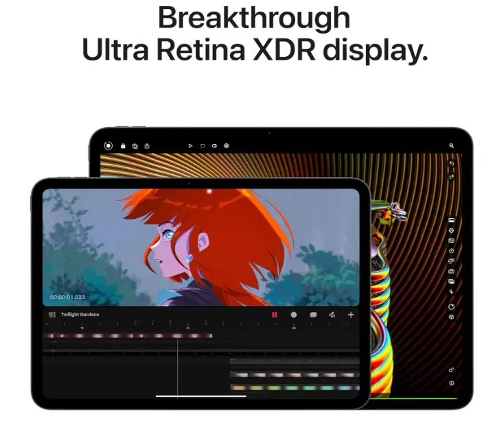 - Pantalla Ultra Retina XDR de 11 pulgadas: la pantalla Ultra Retina XDR ofrece un brillo y contraste supremos, una precisión de color excepcional y tecnologías avanzadas como ProMotion, amplio color P3 y True Tone.* Además, la opción de vidrio con nanotextura está disponible en las configuraciones de 1TB y 2TB.