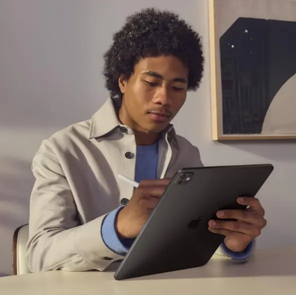 - Apple Pencil y Magic Keyboard para iPad Pro: el Apple Pencil Pro transforma el iPad Pro en un lienzo de dibujo inmersivo y en un excelente dispositivo para tomar notas. El Apple Pencil (USB-C) también es compatible con iPad Pro. El Magic Keyboard para iPad Pro tiene un diseño delgado y ligero, ofrece una excelente experiencia al escribir y cuenta con un panel táctil de vidrio integrado con retroalimentación háptica, además de funcionar como una funda protectora para el iPad.