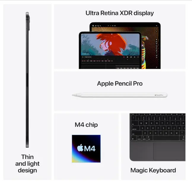 - Por qué elegir el iPad Pro? El iPad Pro ofrece la mejor experiencia en tablets iPad, con un diseño increíblemente delgado y ligero. Cuenta con la innovadora pantalla Ultra Retina XDR, un rendimiento excepcional gracias al chip M4, conectividad inalámbrica ultrarrápida* y compatibilidad con el Apple Pencil Pro.* Además, incluye potentes funciones de productividad en iPadOS.