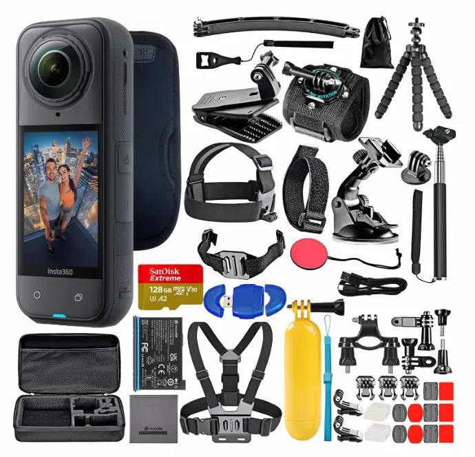Insta360 X5 8K 360 Waterproof Action Camera with PureVideo AI Stabilization, 185-Minute Battery Life (CINSAAHA_X501) + 50-in-1 Accessory Kit + 128GB Card