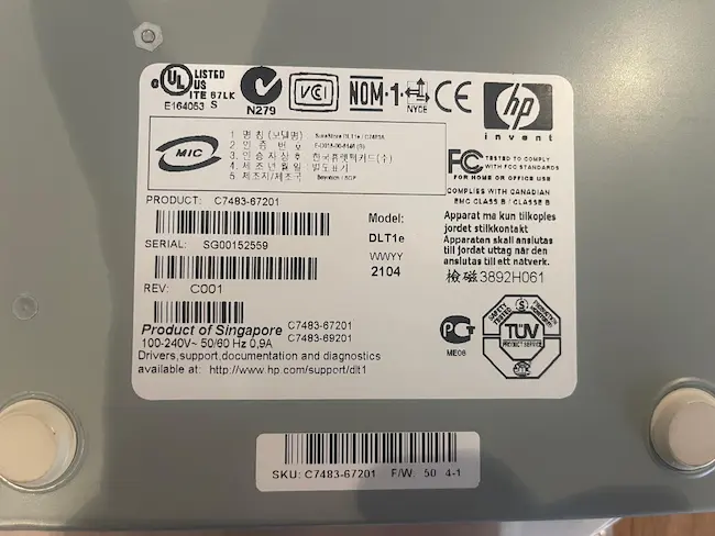 HP Surestore DLT1 SCSI External Tape Drive DLT1e C7483-69201 C7483-67201External Tape DriveFormat: DLT1Connection Type: SCSIModel: DLT1ePN: C7483-67201 Hp c7483-69201Interface: Fast-Wide SCSICondición: Nuevo en caja blanca (no HP)Garantía: 6 meses