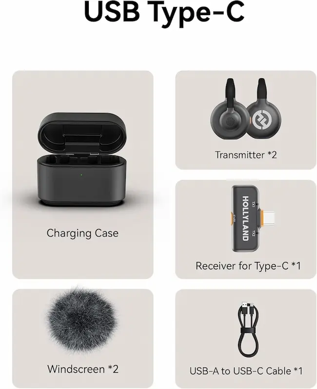 Condition: NewBattery type: Lithium IonPower Source: Battery PoweredColor: Black/Space GrayBrand:HOLLYLANDModelos:LARK M2S Mini ComboLARK M2S Ultimate ComboLARK M2S with USB-C PlugLARK M2S with USB-C PlugFeatures: Noise CancellationSpecial Feature: Wireless, Battery Indicator LightConnectivity Technology: Wi-Fi