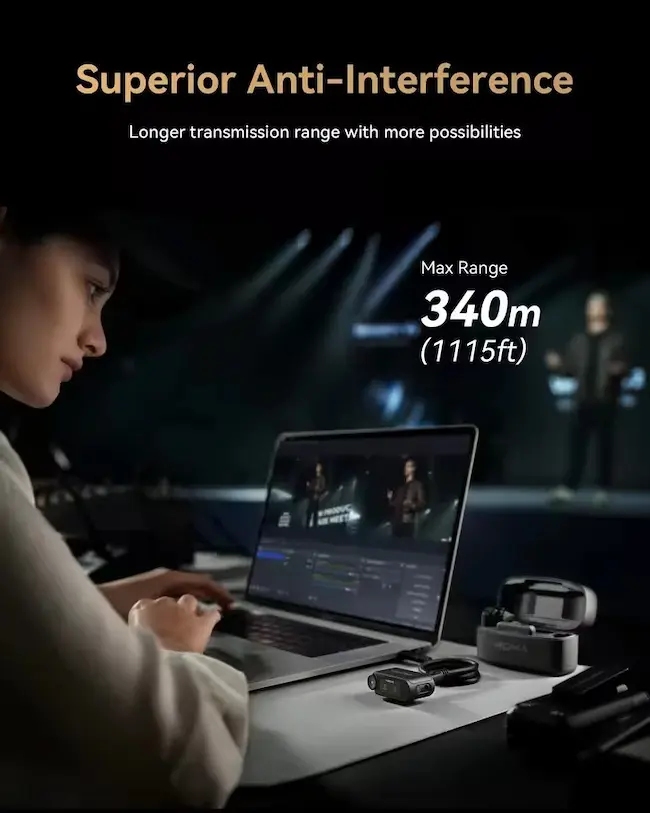 - 340m Long-Range Stability The Hollyland LARK MAX 2 wireless mic delivers crystal-clear audio for professional video recording, incredibly stable audio with LOS range of up to 340m (1115ft). Utilizes advanced 2.4 GHz frequency hopping technology to deliver pristine sound quality and 25ms ultra-low latency (*TX to RX).