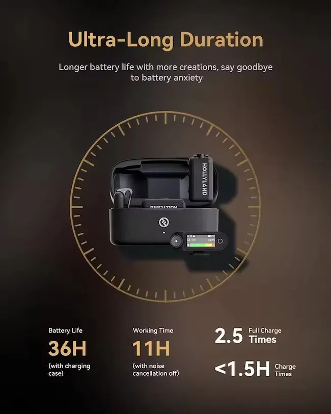 - 36H Extended Duration, Create Anytime Say goodbye to battery anxiety, the LARK MAX 2 wireless microphone has a long battery life ensuring you can create more, enabling you to create anytime, anywhere.