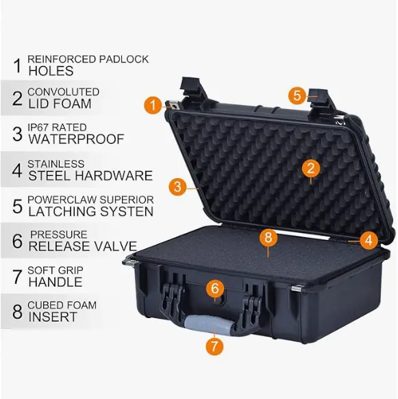 Protección impermeable IP67 y sellada: mantenga su valioso equipo de cámara completamente seco y a salvo de la lluvia, salpicaduras, polvo y arena con nuestra resistente funda rígida impermeable con clasificación IP. Ideal para entornos hostiles y aventuras al aire libre.