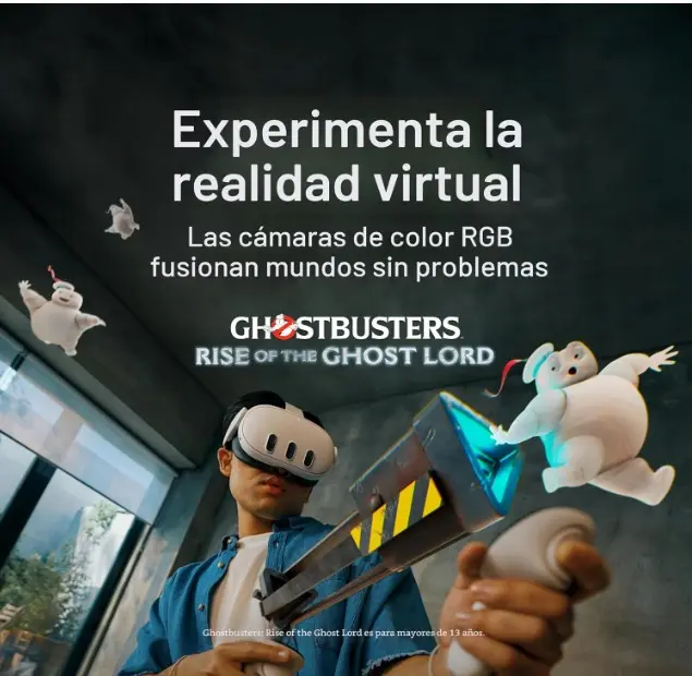 - Contenido del Paquete: Incluye el visor Meta Quest 3, 2 controladores Touch Plus con correas, cable de carga y adaptador de corriente.