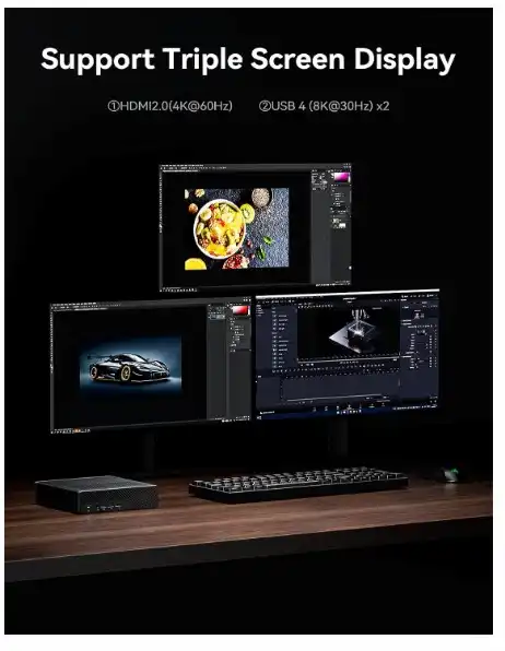 - 【Support Enterprise-class Storage】:MS-01 supports enterprise-class storage, and expands with up to three M.2 NVMe SSDs, with each slot supporting a maximum capacity of 2TB. The leftmost slot is PCIe 4.0 compatible, with a maximum transfer speed of 7000MB/s.It supports both RAID0 for increased capacity and RAID1 for enhanced data safety. Supports enterprise-class storage, allowing for expansion up to a total max storage of 24TB with a configuration of one U.2 NVMe SSD and two 22110 M.2 NVMe SSDs.MS-01 meets a wide range of capacity requirements.