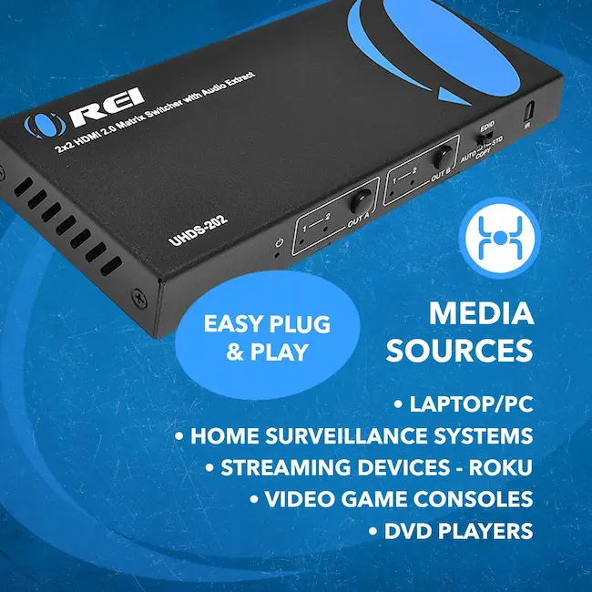 OREI Interruptor de matriz HDMI 4K 2 x 2, conmutador 18G UltraHD soporta hasta 4K @ 60Hz y 1080P IR EDID HDCP 2.- Control remoto (UHDS-202)
