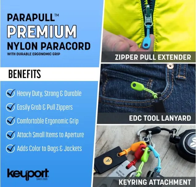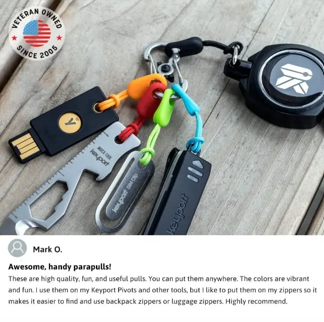 Lleva la durabilidad y el estilo táctico a tus pertenencias con el set Keyport ParaPull. Diseñados para resistir el uso rudo, estos tiradores están fabricados con paracord de nailon de 1.5 mm de calidad premium.