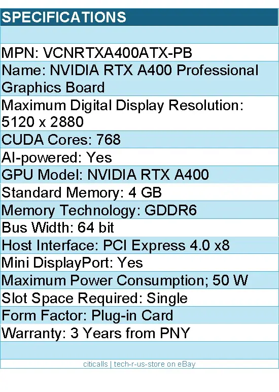 - Memoria de Alta Velocidad: Dispone de 4 GB de memoria GDDR6 con un ancho de banda de 96 GB/s, ideal para manejar modelos 3D de tamaño pequeño a mediano y aplicaciones CAD 2D/3D con total fluidez.