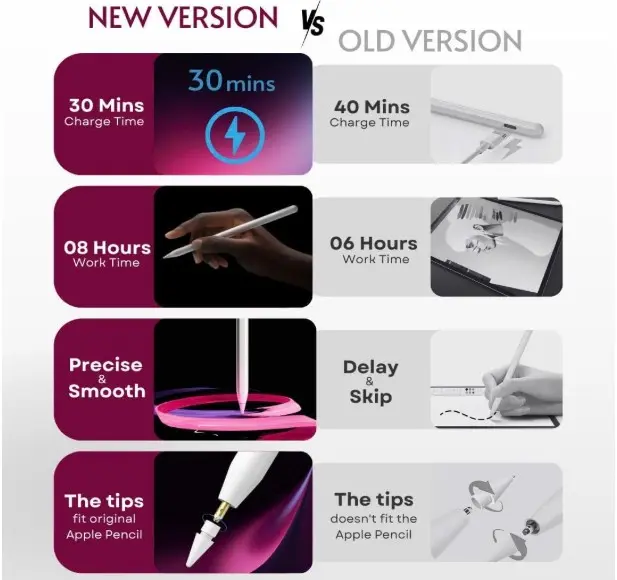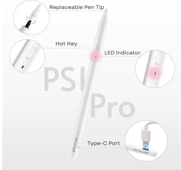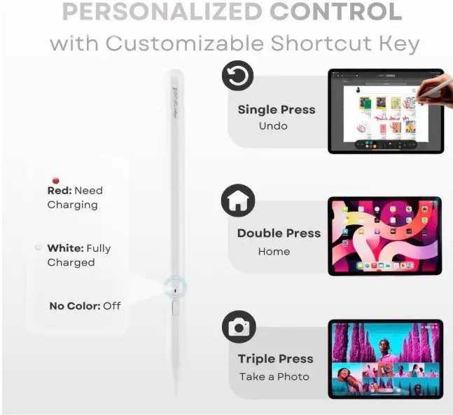 PS1-Pro Stylus Pen for Apple iPad 2018-2025|Faster Charge Custom Shortcuts Pixel-Perfect with Metal Chrome Tip|Pencil for iPad 11th & 10th Generation, Pro 11″/12.9″/M4, Air 3/4/5/M2/M3, mini 5/6th Gen
