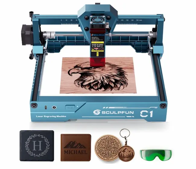 SCULPFUN C1 Mini Laser Engraver, 3W Portable Laser Engraving Machine with 0.002in Ultra-fine Dot, Work for DIY Beginners, Plywood, Leather, Kraft Paper, Whiteboard. https://www.youtube.com/watch?v=Nn7PgmMAqv8