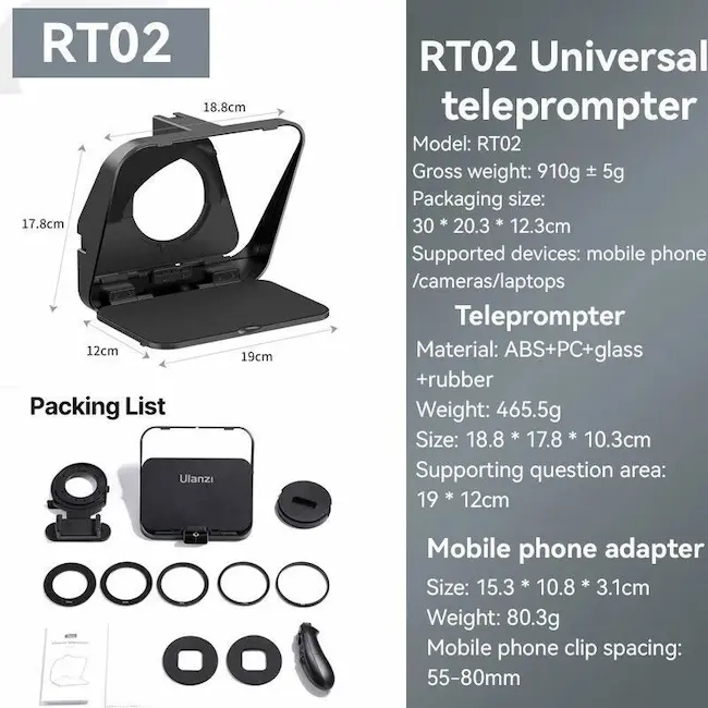 Teleprompter Ulanzi RT02 para cámaras DSLR y smartphones con control remoto