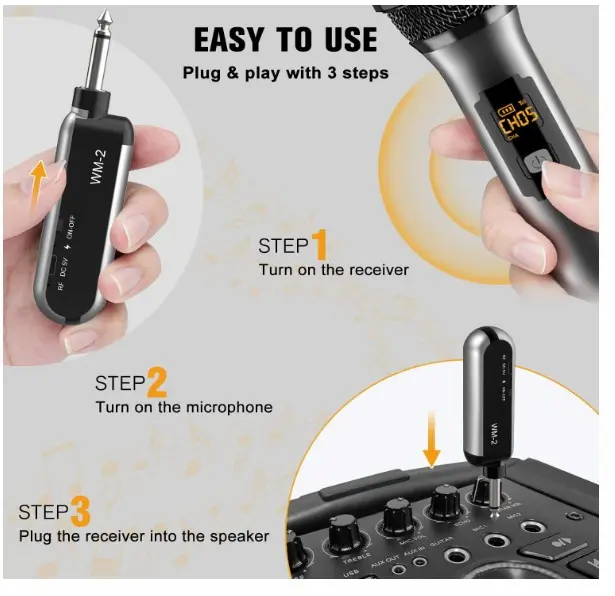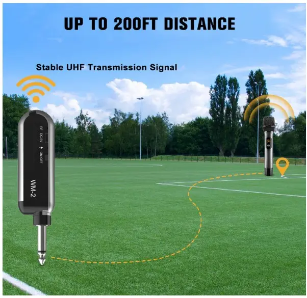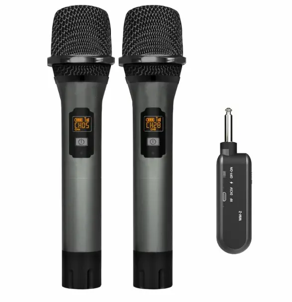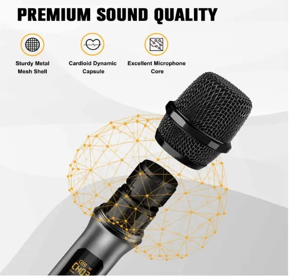 VeGue Micrófono inalámbrico, UHF inalámbrico dual de mano dinámico con receptor recargable, para fiesta de karaoke, amplificador de voz, sistema PA, máquina de canto, iglesia, boda, reunión, 200 pies