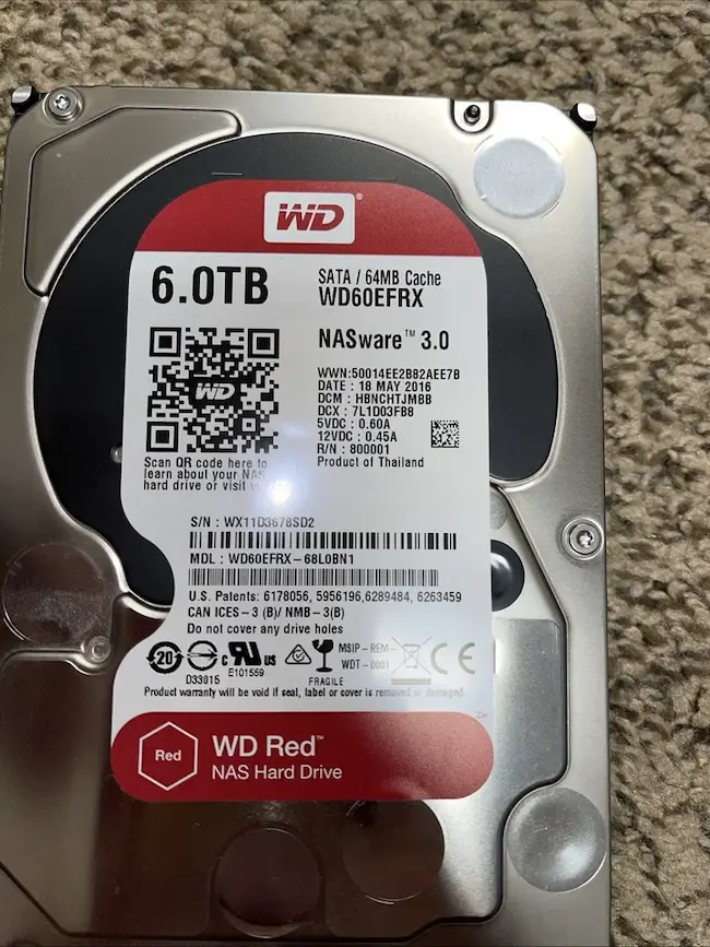MPN: WD60EFRXStorage Capacity: 6 TBDrive Type(s) Supported: HDDRotation Speed: 5400 RPMCache: 256 MBStorage Format: HDD OnlyRead Speed: 1800MB/sTransfer Rate: 40 Mbps